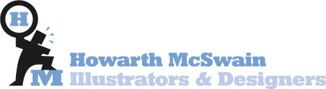 Howarth McSwain draw on over 25 years experience to offer you a wide range of illustrative styles from cartoon strips to character development... plus a full graphic design service (concepts, visuals, design & print, websites.. the full bag of mashings). All-in-all a tidy and attentive little package at your fingertips. Dave Howarth |